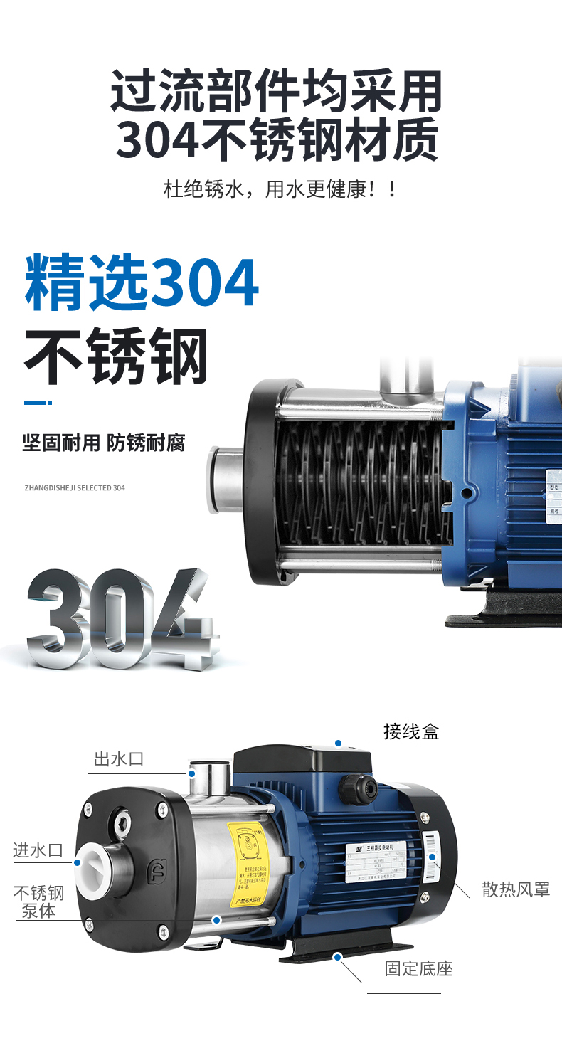 南方CHM 輕型臥式多級離心泵非自吸臥式多級離心泵,葉輪導葉采用不銹鋼板沖壓焊接制成,配加長軸電機,軸向入口和徑向出口。
